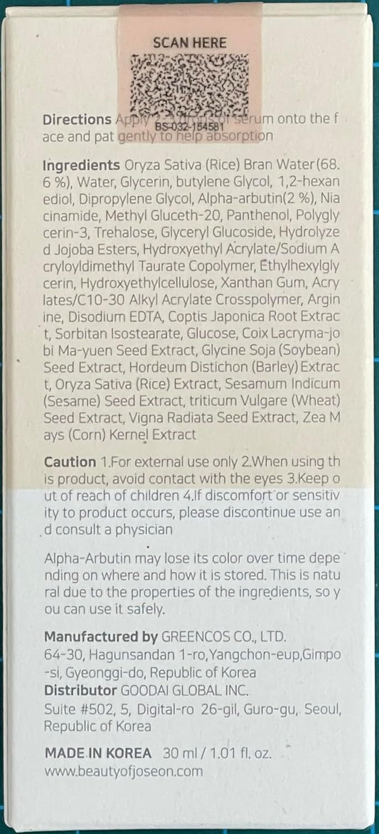 BEAUTY OF JOSEON Glow Deep Hydrating Serum: Rice + Arbutin 30ml Face Skin Care