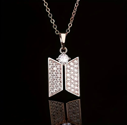 K-pop BTS Inlaid Crystal Zircon Double Rhombus Pendant Necklace
